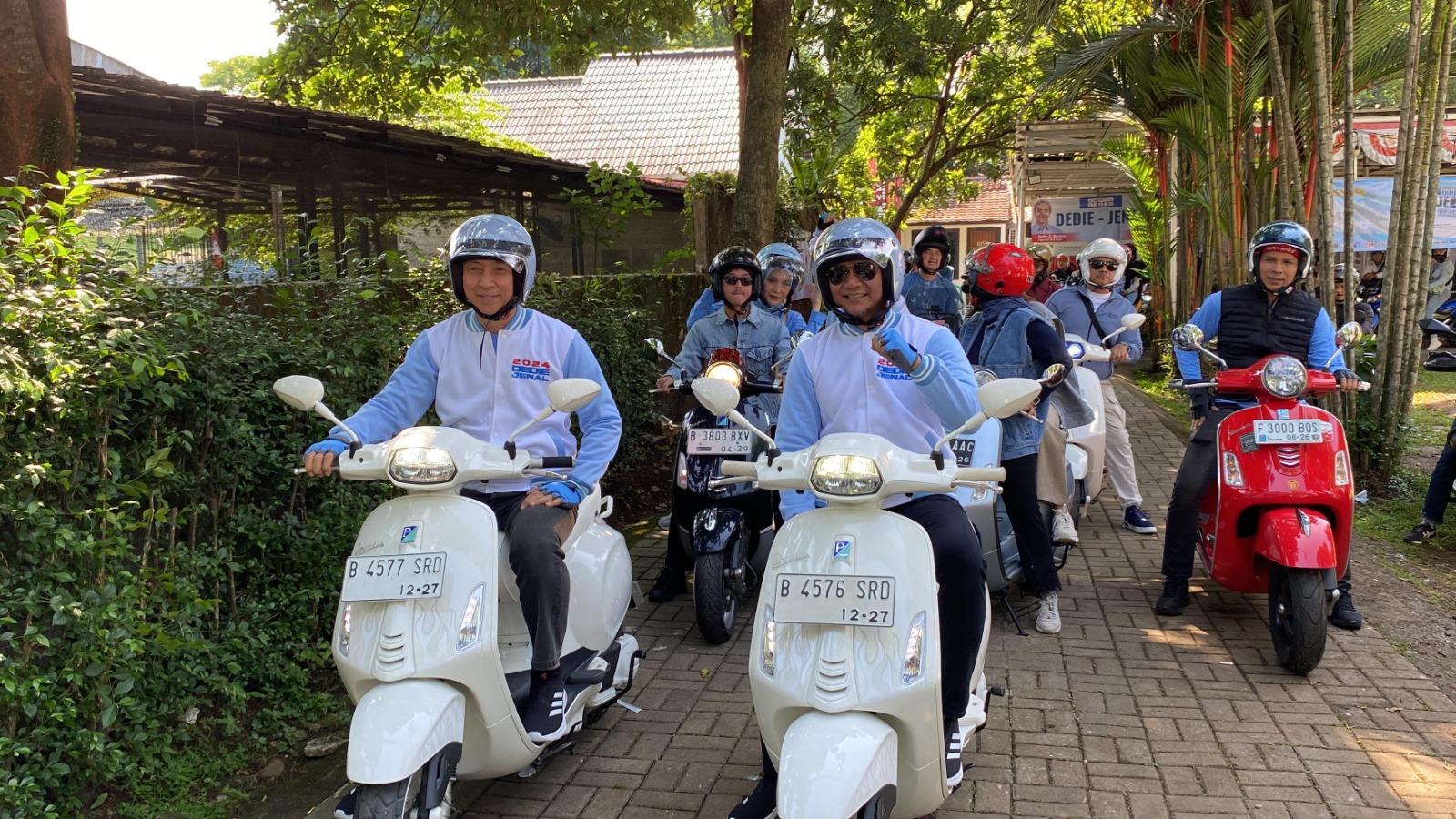 Pakai Vespa Matic, Paslon Dedie Rachim-Jenal Mutaqin Riding Bareng Komunitas Bikers Kota Bogor