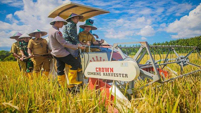 Panen raya di Kota Bogor diawali dengan pemanenan padi oleh Wali Kota, Dedie A Rachim menggunakan mesin pemanen padi bersama Forkopimda.