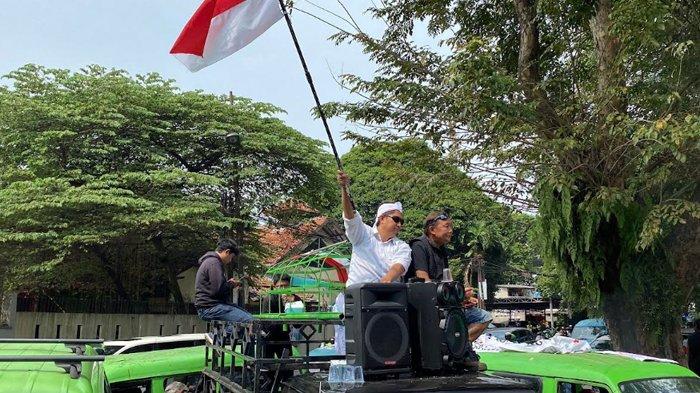 Dari beberapa orang orator, ada yang berpakaian seperti gubernur Jawa Barat Dedi Mulyadi atau KDM.