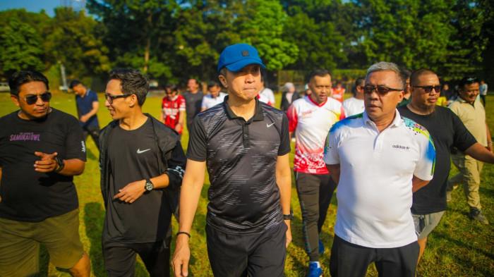 Wali Kota Bogor, Dedie A. Rachim ikut senam sehat bersama wartawan PWI Kota Bogor yang dilanjutkan dengan jalan sehat.