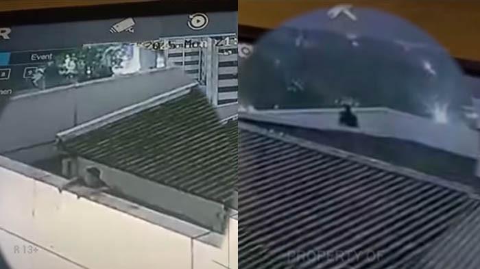Rekeman CCTV menunjukan gelagat Arya di rooftop itu seperti celingak-celinguk melihat pemandangan kota dari atas.