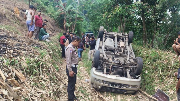 Kondisi kendaraan tersebut pun dalam keadaan terbalik setelah terjun bebas ke jurang dengan kedalaman sekitar 10 meter.