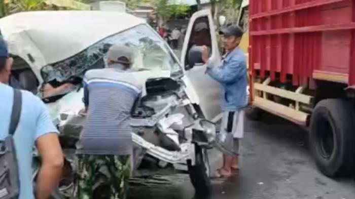Mobil Gran Max Kecelakaan dengan Truk Box di Tanjungsari Bogor, Sopir Terjepit di Ruang Kemudi