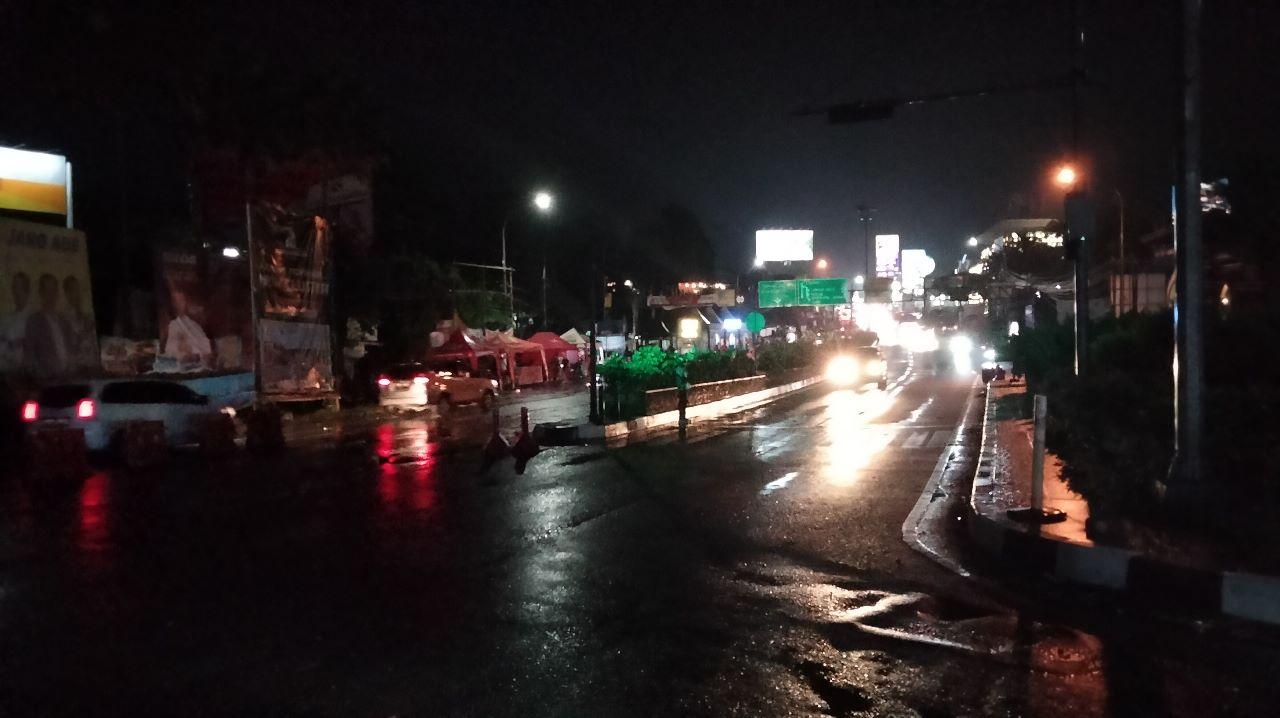 Arus lalu lintas di jalur Pucak saat malam takbir terpantau dari Simpang Gadog ramai lancar.