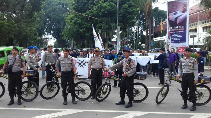Aksi Unjuk Rasa BEM Se Kota Bogor Dikawal Polisi Bersepeda, Lihat Posenya Saat Pengamanan