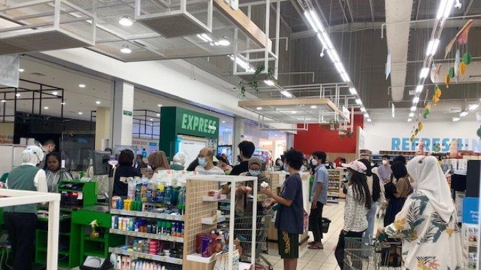Pantauan TribunnewsBogor.com, kebutuhan bahan pokok di supermarket Mall Botani Square, Kota Bogor tampak ramai pengunjung, Jumat (1/4/2022).