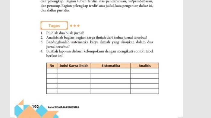 Ini Kunci Jawaban Bahasa Indonesia Kelas 11 Semester 2 Halaman 192, Analisis Bagian Karya Ilmiah