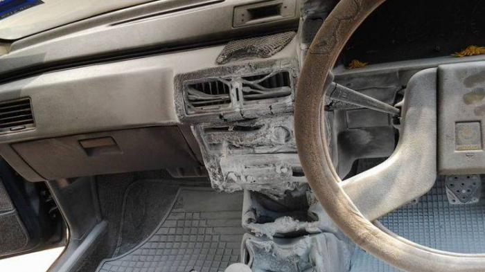 Dugaan sementara karena arus listrik membuat bagian kap depan mobil terbakar