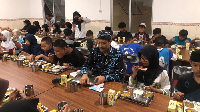 Mensos menyempatkan diri untuk makan malam bersama murid sekolah yang berada di Sentra Terpadu Inten Soeweno