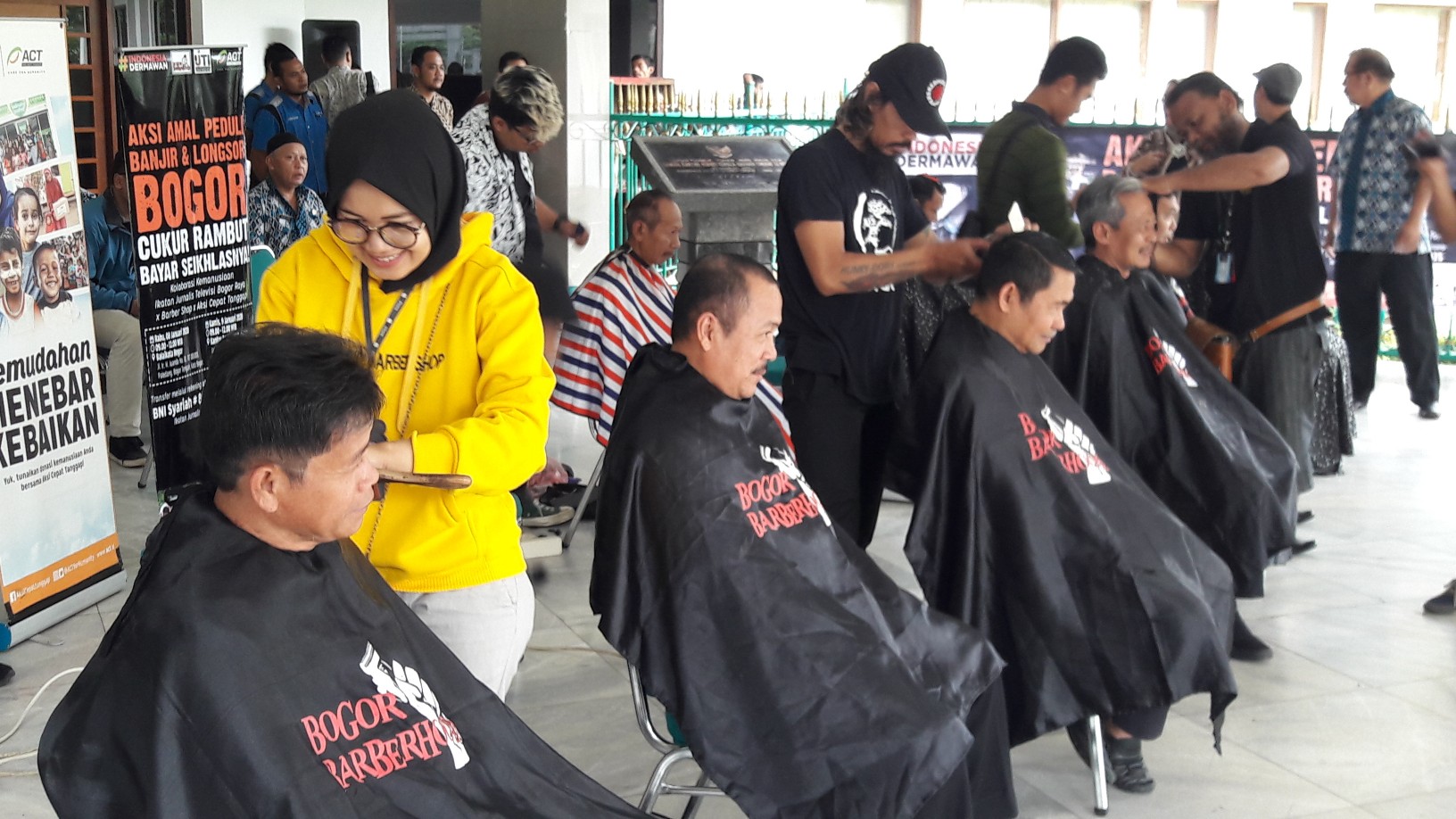 Kegiatan cukur massal ini diadakan oleh Ikatan Jurnalis Televisi Korda Bogor Raya bekerjasama dengan puluhan barber shop dan Aksi Cepat Tanggap (ACT).